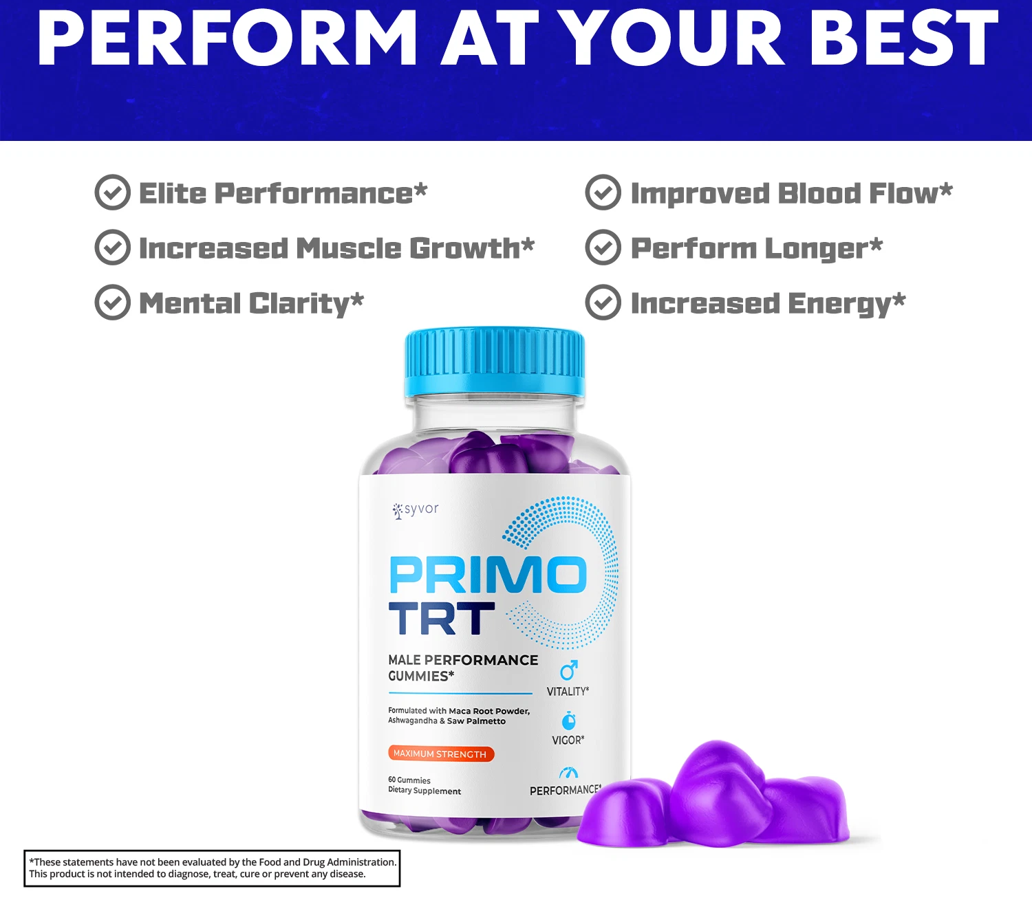 Fuel your performance and energy naturally with Primo TRT Men’s Gummies Advanced Pro Formula. Specially designed for men, these delicious chewable gummies provide advanced support for stamina, vitality, and overall wellness.